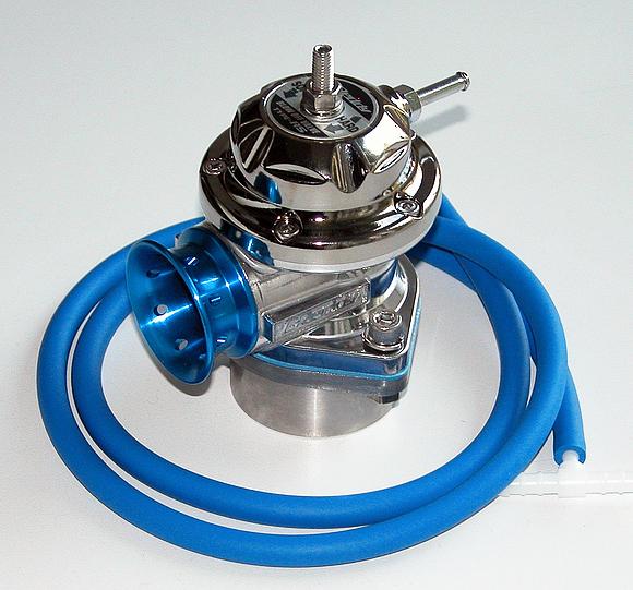 Перепускной клапан GREDDY Type-RS с регулировкой порога срабатывания для обеспечения отсутствия утечки давления на рабочих режимах и перегрузки турбины при резком закрытии дросселя.